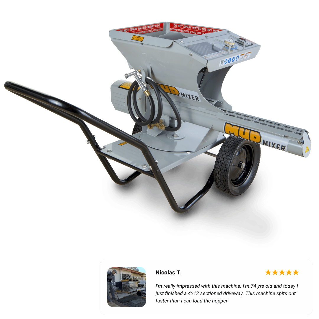 “Contractors wanted $9000.00 to pour a parking pad next to our house. I purchased the mud mixer and did it myself. Myself and two other guys poured 300 bags in 6 hours. MUDMIXER paid for itself in one job.”