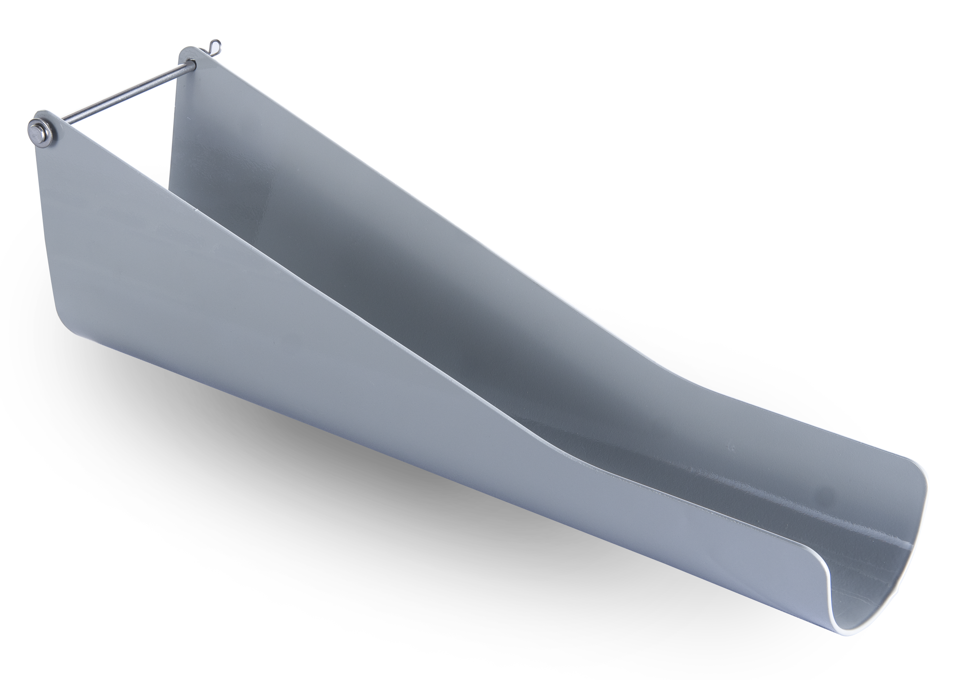 Reinforced steel chute with precision flow control -- handles rocks without damage