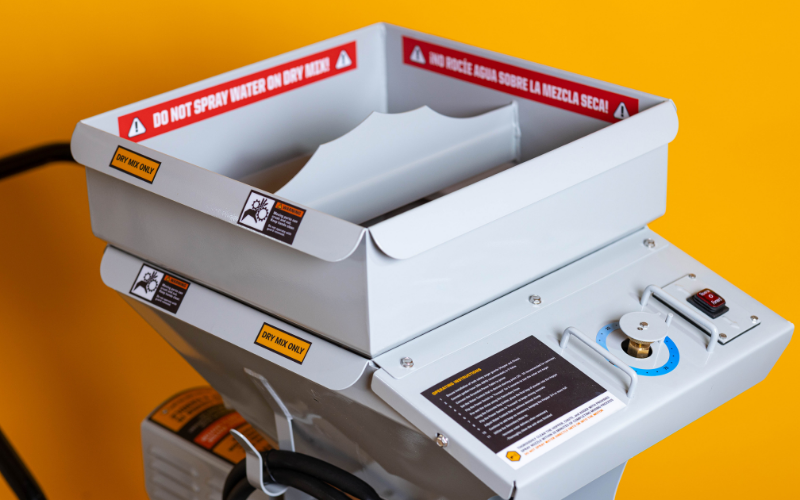 The MudMixer® Hopper Extension increases your standard concrete hopper capacity from 120 pounds to 300 pounds.