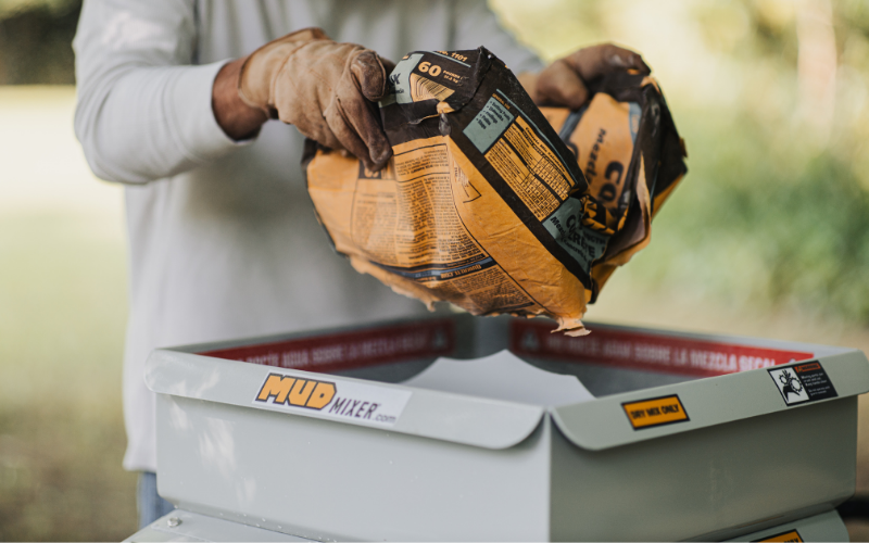 The MudMixer is designed to handle a wide variety of dry mix products, including concrete, mortar, stucco, cement, grout, poolkrete, sand topping mix, rapid set, permaedge, vermiculite, and more. It’s engineered for consistent mixing of premixed bagged materials used in construction, landscaping, and hardscape projects.